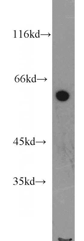 HepG2 cells were subjected to SDS PAGE followed by western blot with Catalog No:111620(IFIT3 antibody) at dilution of 1:800