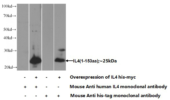 IL-4 Mouse Monoclonal antibody. Positive IHC detected in human tonsillitis tissue. Positive WB detected in Jurkat cells, Transfected HEK-293 cells. Observed molecular weight by Western-blot: 18 kDa