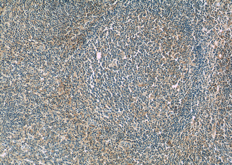 Immunohistochemistry of paraffin-embedded human tonsillitis tissue slide using Catalog No:107401(IL4 Antibody) at dilution of 1:50 (under 40x lens)