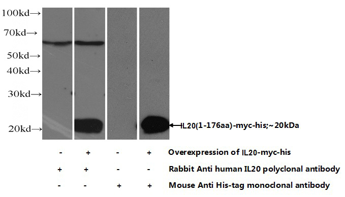IL20 Rabbit Polyclonal antibody. Positive WB detected in Transfected HEK-293 cells.