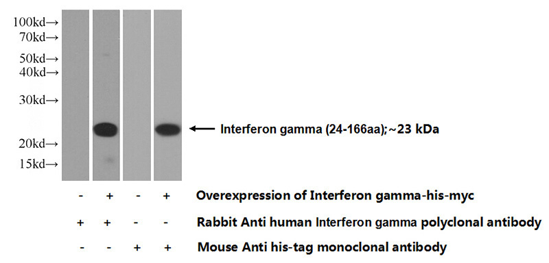 Interferon gamma Rabbit Polyclonal antibody. Positive IHC detected in human cervical cancer tissue, human heart tissue, human liver tissue, human spleen tissue, human testis tissue. Positive WB detected in Transfected HEK-293 cells, mouse thymus tissue, Recombinant protein.