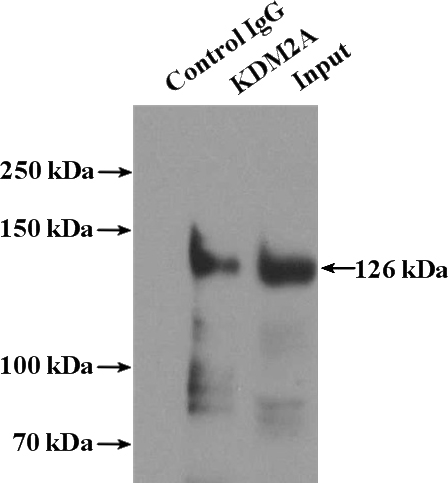 KDM2A Rabbit Polyclonal antibody. Positive IP detected in HeLa cells. Positive WB detected in Jurkat cells, NIH/3T3 cells. Observed molecular weight by Western-blot: 126 kDa