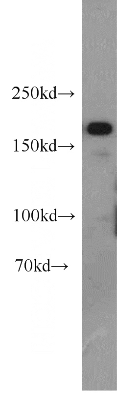 HeLa cells were subjected to SDS PAGE followed by western blot with Catalog No:112029(KDM5C antibody) at dilution of 1:500