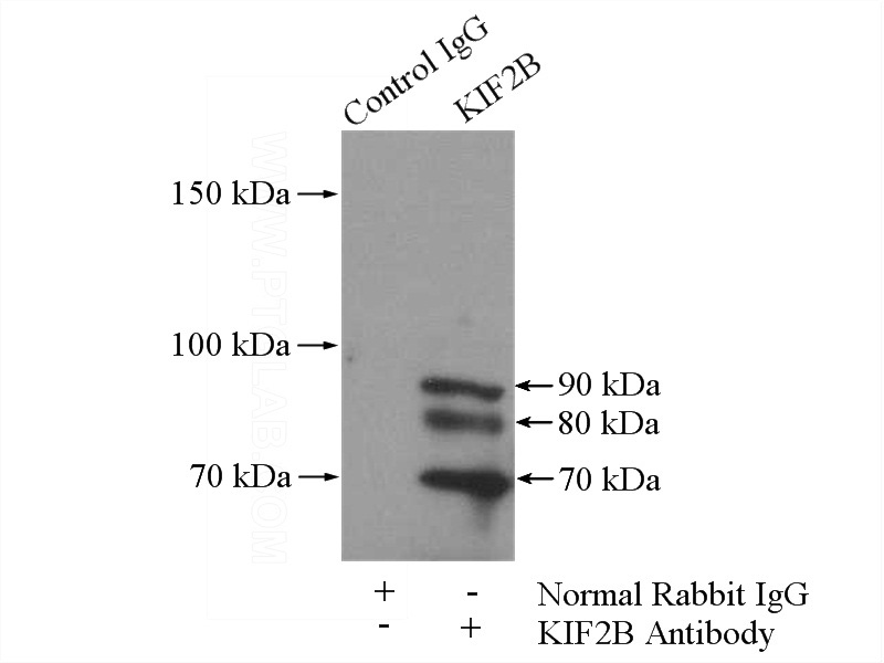 IP Result of anti-KIF2B (IP:Catalog No:112011, 4ug; Detection:Catalog No:112011 1:1000) with mouse testis tissue lysate 4000ug.