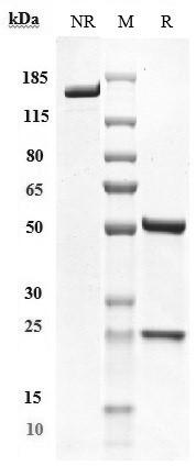 Anti-CD47 Antibody (letaplimab) on SDS-PAGE under reducing (R) condition. The purity of the protein is greater than 95%.