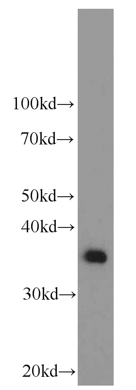 HepG2 cells were subjected to SDS PAGE followed by western blot with Catalog No:107406(ARG1 antibody) at dilution of 1:1000