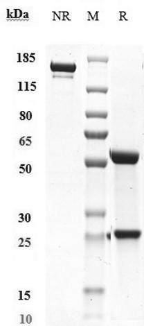 Anti-CD19 Antibody (Loncastuximab tesirine) on SDS-PAGE under reducing (R) condition. The purity of the protein is greater than 95%.