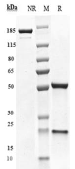 Anti-ERBB1 / EGFR / HER1 Antibody (losatuxizumAb) on SDS-PAGE under reducing (R) condition. The purity of the protein is greater than 95%.