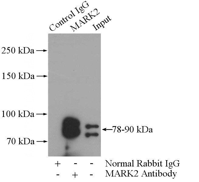 IP Result of anti-MARK2 (IP:Catalog No:112479, 4ug; Detection:Catalog No:112479 1:1000) with rat brain tissue lysate 4000ug.
