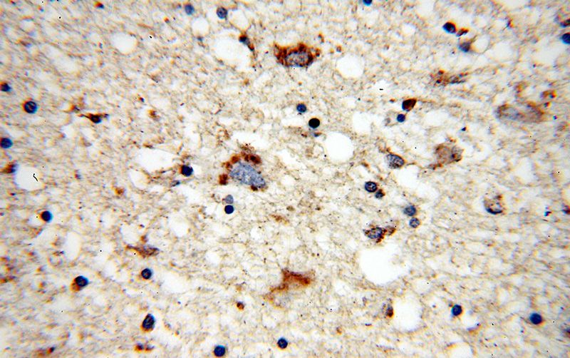 Immunohistochemical of paraffin-embedded human brain using Catalog No:112479(MARK2 antibody) at dilution of 1:50 (under 40x lens)