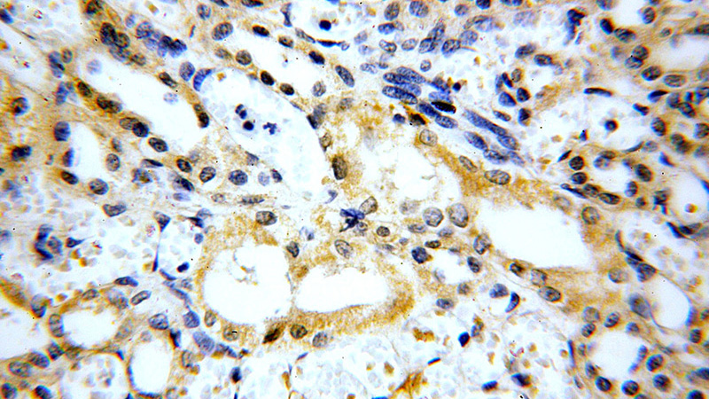 Immunohistochemical of paraffin-embedded human kidney using Catalog No:112481(MARK4 antibody) at dilution of 1:50 (under 40x lens)