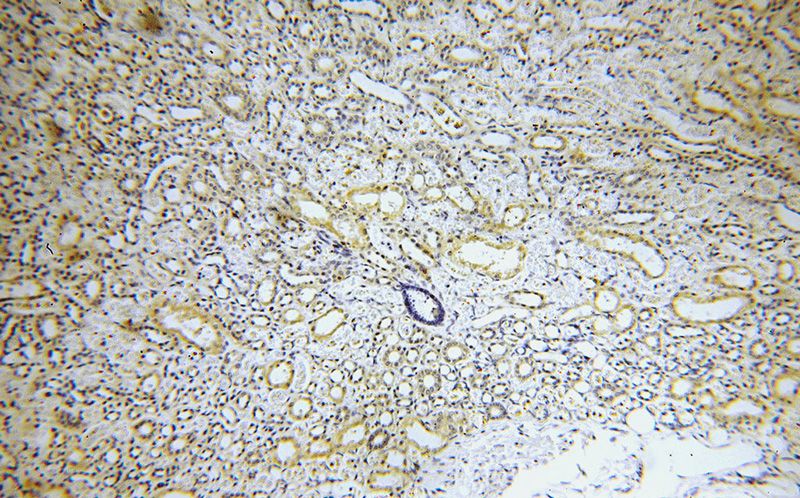 Immunohistochemical of paraffin-embedded human kidney using Catalog No:112481(MARK4 antibody) at dilution of 1:50 (under 10x lens)