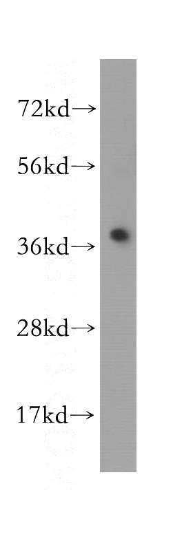 human kidney tissue were subjected to SDS PAGE followed by western blot with Catalog No:112649(MAP2K6 antibody) at dilution of 1:500