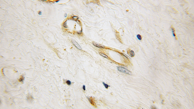 Immunohistochemical of paraffin-embedded human breast cancer using Catalog No:112649(MAP2K6 antibody) at dilution of 1:100 (under 10x lens)