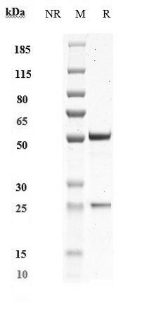 Anti-IL-1RL1 / ST2 / IL-33R Antibody (melrilimab) on SDS-PAGE under reducing (R) condition. The purity of the protein is greater than 95%.