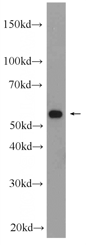 mouse liver tissue were subjected to SDS PAGE followed by western blot with Catalog No:112534(MFSD8 Antibody) at dilution of 1:1000