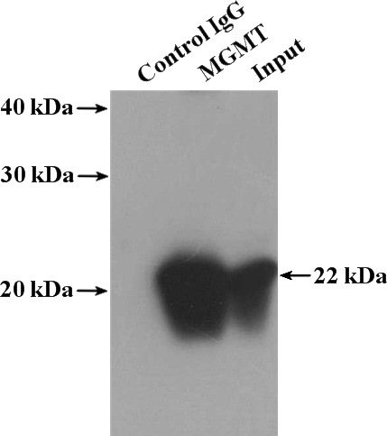 IP Result of anti-MGMT (IP:Catalog No:112603, 4ug; Detection:Catalog No:112603 1:500) with Jurkat cells lysate 3200ug.