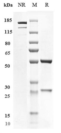 Anti-TNFRSF5 / CD40 Antibody (mitazalimab) on SDS-PAGE under reducing (R) condition. The purity of the protein is greater than 95%.