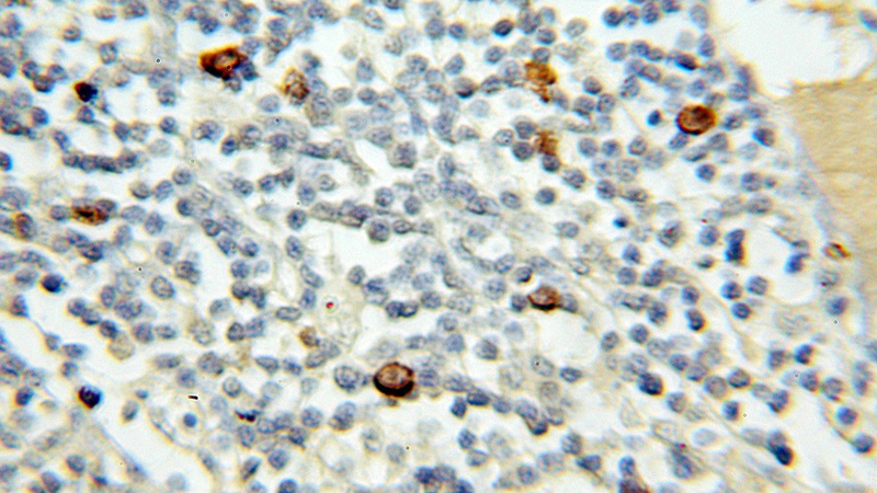 Immunohistochemical of paraffin-embedded human lymphoma using Catalog No:112802(MRE11A antibody) at dilution of 1:50 (under 10x lens)