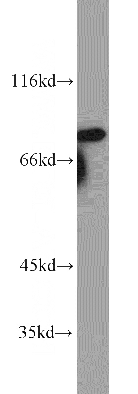 A431 cells were subjected to SDS PAGE followed by western blot with Catalog No:112802(MRE11A antibody) at dilution of 1:600