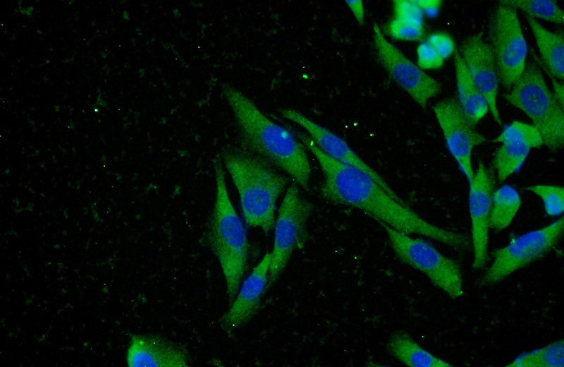 Immunofluorescent analysis of A375 cells using Catalog No:112795(MTR Antibody) at dilution of 1:50 and Alexa Fluor 488-congugated AffiniPure Goat Anti-Rabbit IgG(H+L)