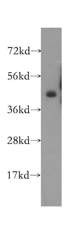 mouse uterus tissue were subjected to SDS PAGE followed by western blot with Catalog No:112906(MVK antibody) at dilution of 1:500