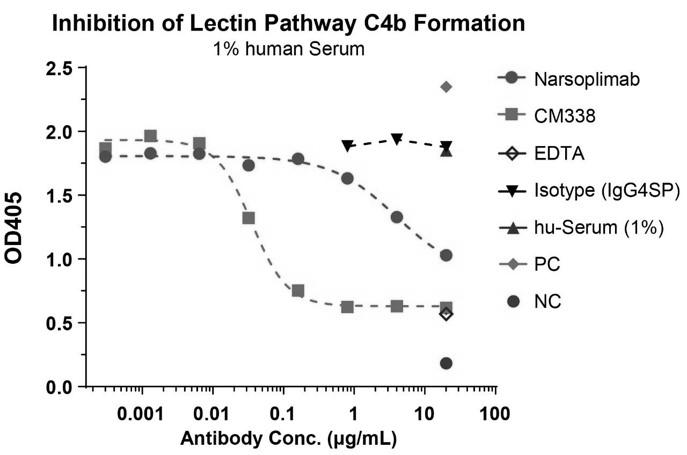 C5b-C9 of the MBL pathway can be completely inhibited by Anti-MASP2 Antibody (narsoplimab) with an IC50 of 0.7337 ug/mL.