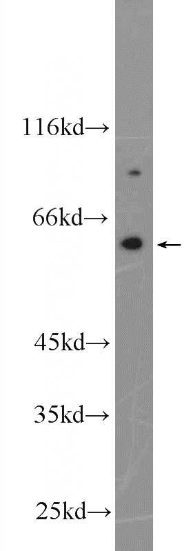 Jurkat cells were subjected to SDS PAGE followed by western blot with Catalog No:113315(NOX5 Antibody) at dilution of 1:1000