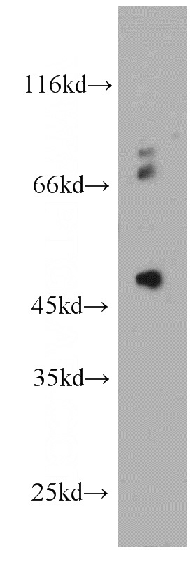 HeLa cells were subjected to SDS PAGE followed by western blot with Catalog No:113894(PIGM antibody) at dilution of 1:800