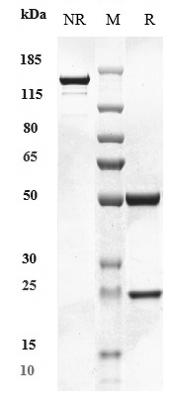 Anti-ERBB1 / EGFR / HER1 Antibody (pimurutamab) on SDS-PAGE under reducing (R) condition. The purity of the protein is greater than 95%.