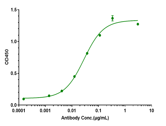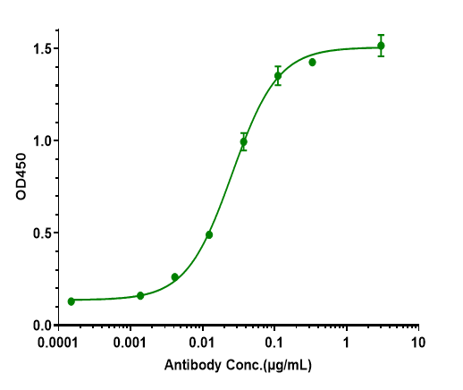 Immobilized Human CSF2 / GM-CSF, His Tag at 2 μg/mL can bind Anti-CSF2 / GM-CSF Antibody (plonmarlimab), The EC50 was approximately 0.02816 ug/mL.