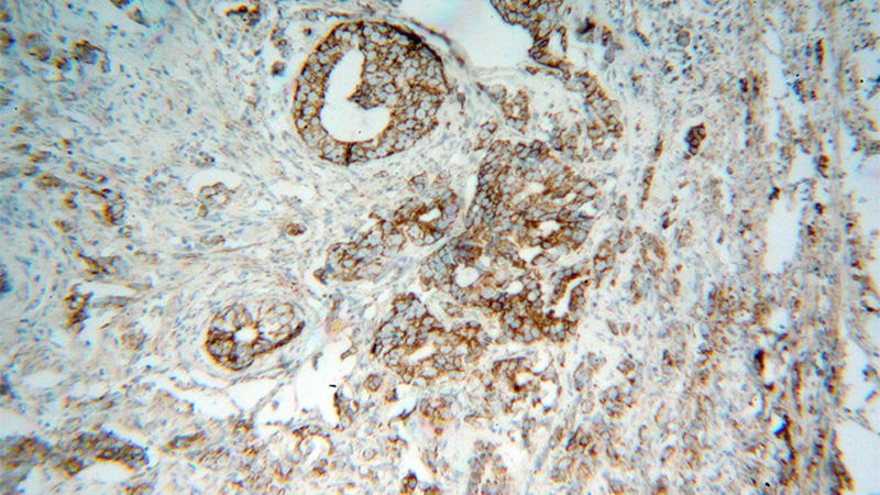 Immunohistochemical of paraffin-embedded human gliomas using Catalog No:113984(PNPT1 antibody) at dilution of 1:100 (under 10x lens)