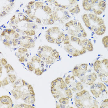 Immunohistochemistry of paraffin-embedded human stomach using PPP1CC antibody at dilution of 1:100 (40x lens).