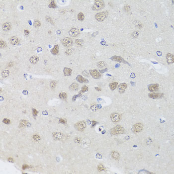Immunohistochemistry of paraffin-embedded rat brain using PPP1CC antibody at dilution of 1:100 (40x lens).