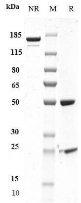 Anti-CTLA-4 / CD152 Antibody (quavonlimab) on SDS-PAGE under reducing (R) condition. The purity of the protein is greater than 90%.