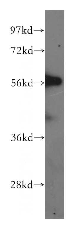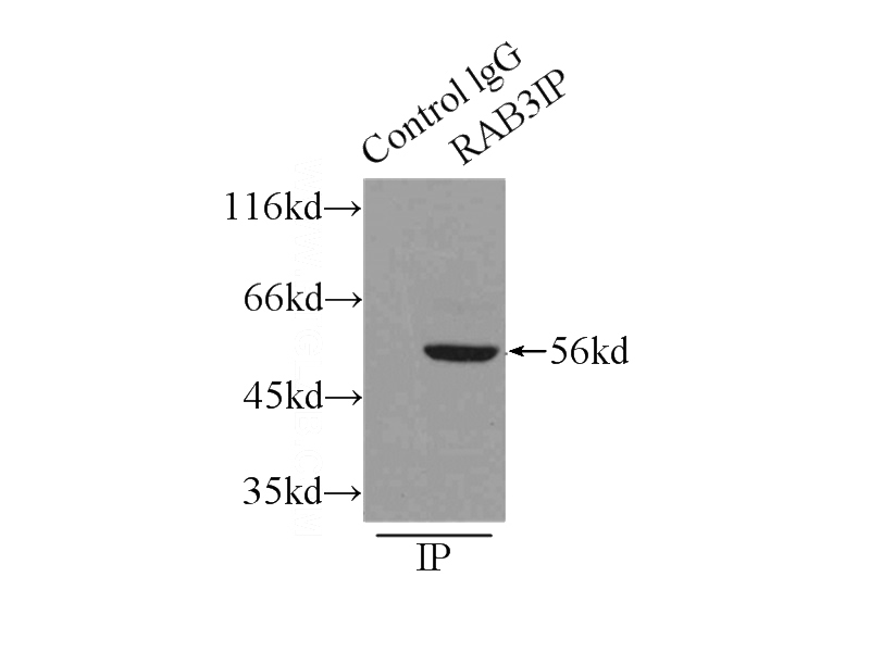 RAB3IP/Rabin8 Rabbit Polyclonal antibody. Positive IF detected in HepG2 cells. Positive IHC detected in human pancreas cancer tissue, human pancreas tissue. Positive IP detected in mouse lung tissue. Positive WB detected in human brain tissue, human heart tissue, mouse lung tissue. Observed molecular weight by Western-blot: 56 kDa