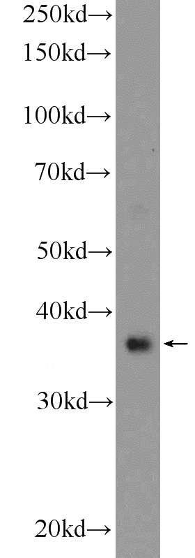 mouse testis tissue were subjected to SDS PAGE followed by western blot with Catalog No:114515(RAD51 Antibody) at dilution of 1:1000