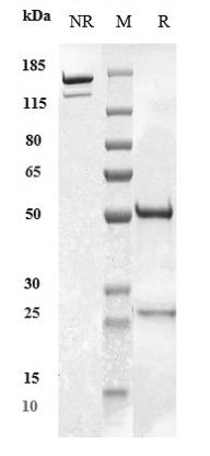 Anti-PCSK9 Antibody (ralpancizumab) on SDS-PAGE under reducing (R) condition. The purity of the protein is greater than 95%.