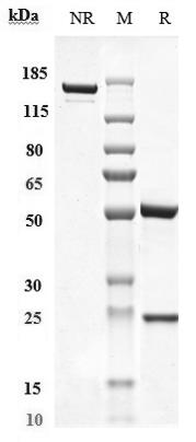 Anti-PCSK9 Antibody (recaticimab) on SDS-PAGE under reducing (R) condition. The purity of the protein is greater than 90%.