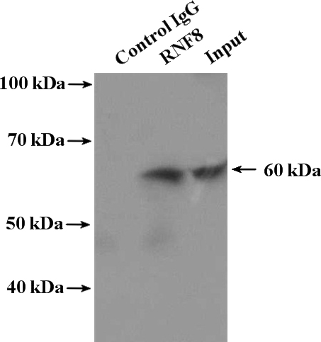 IP Result of anti-RNF8 (IP:Catalog No:114764, 4ug; Detection:Catalog No:114764 1:600) with HeLa cells lysate 3200ug.