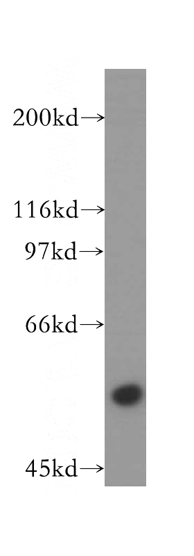 human kidney tissue were subjected to SDS PAGE followed by western blot with Catalog No:114768(RNMT antibody) at dilution of 1:300