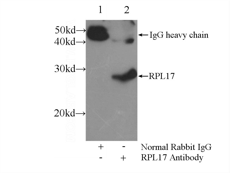IP Result of anti-RPL17 (IP:Catalog No:114817, 3ug; Detection:Catalog No:114817 1:700) with mouse lung tissue lysate 6000ug.
