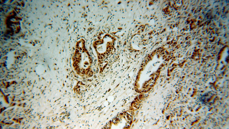 Immunohistochemical of paraffin-embedded human pancreas cancer using Catalog No:114817(RPL17 antibody) at dilution of 1:100 (under 10x lens)