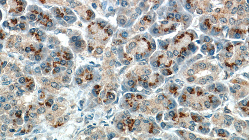 Immunohistochemical of paraffin-embedded human pancreas using Catalog No:107510(RPS3 antibody) at dilution of 1:50 (under 40x lens)