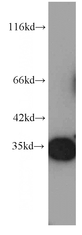 human brain tissue were subjected to SDS PAGE followed by western blot with Catalog No:107510(RPS3 antibody) at dilution of 1:1000