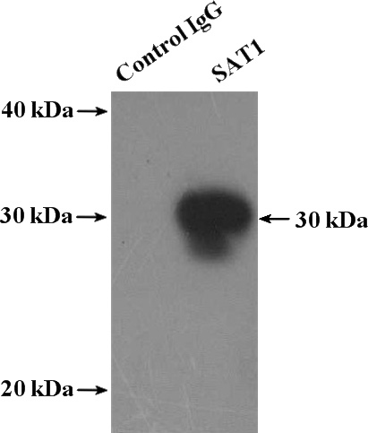 IP Result of anti-SAT1 (IP:Catalog No:114975, 4ug; Detection:Catalog No:114975 1:300) with mouse liver tissue lysate 4000ug.