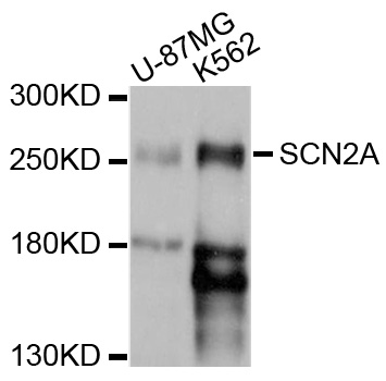 Western blot analysis of extracts of various cell lines, using SCN2A antibody at 1:1000 dilution.Secondary antibody: HRP Goat Anti-Rabbit IgG (H+L) at 1:10000 dilution.Lysates/proteins: 25ug per lane.Blocking buffer: 3% nonfat dry milk in TBST.Detection: ECL Basic Kit .Exposure time: 5s.