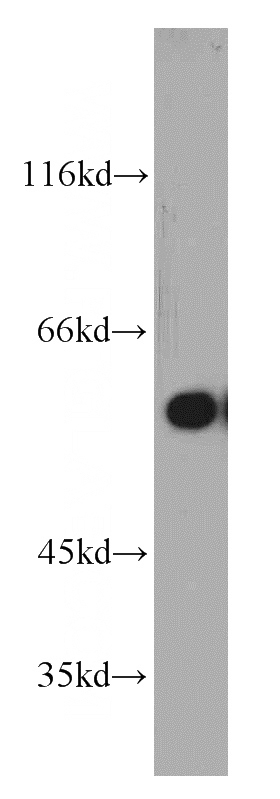 Jurkat cells were subjected to SDS PAGE followed by western blot with Catalog No:115099(DHCR24 antibody) at dilution of 1:800