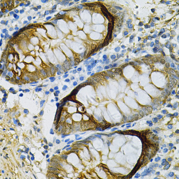 Immunohistochemistry of paraffin-embedded human colon using SELENBP1 Antibody at dilution of 1:100 (40x lens).