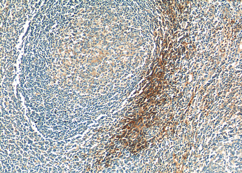 Immunohistochemistry of paraffin-embedded human tonsillitis tissue slide using Catalog No:115209(SERPING1 Antibody) at dilution of 1:50 (under 10x lens)